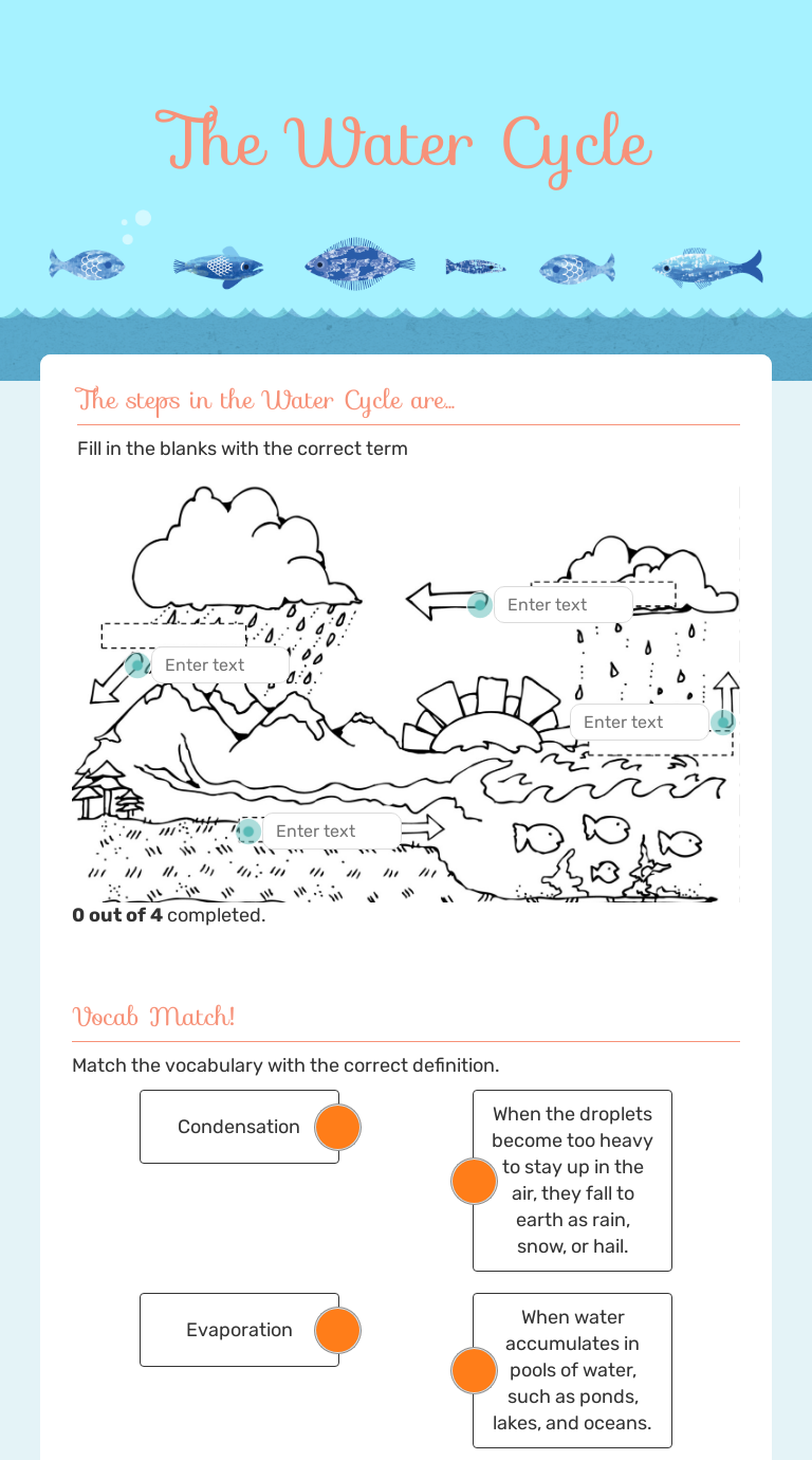 The Water Cycle Worksheet for kids Answers and Completion Rate