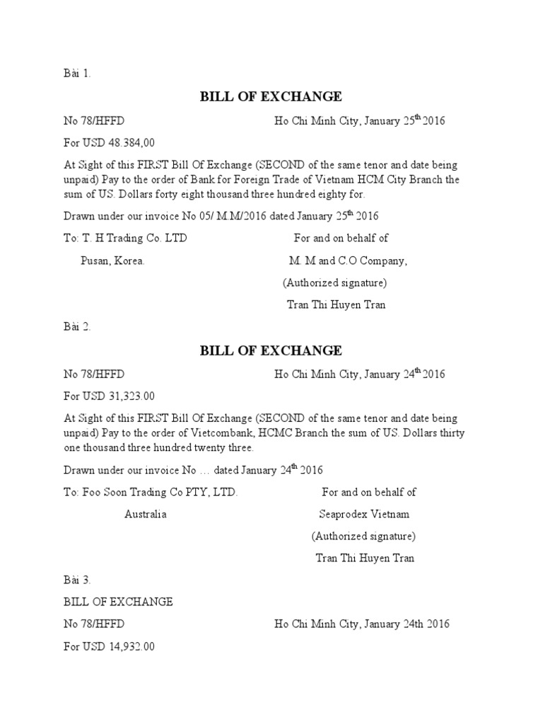 International Bill of Exchange Template PDF Negotiable Instrument