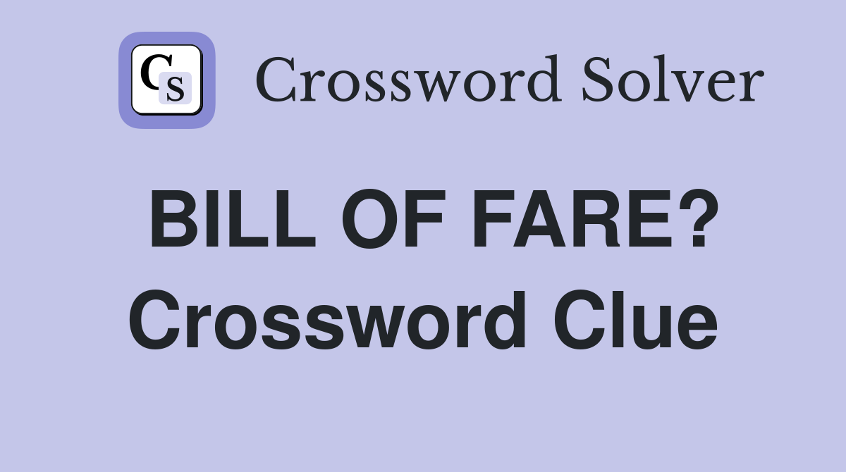 BILL OF FARE? Crossword Clue Answers Crossword Solver
