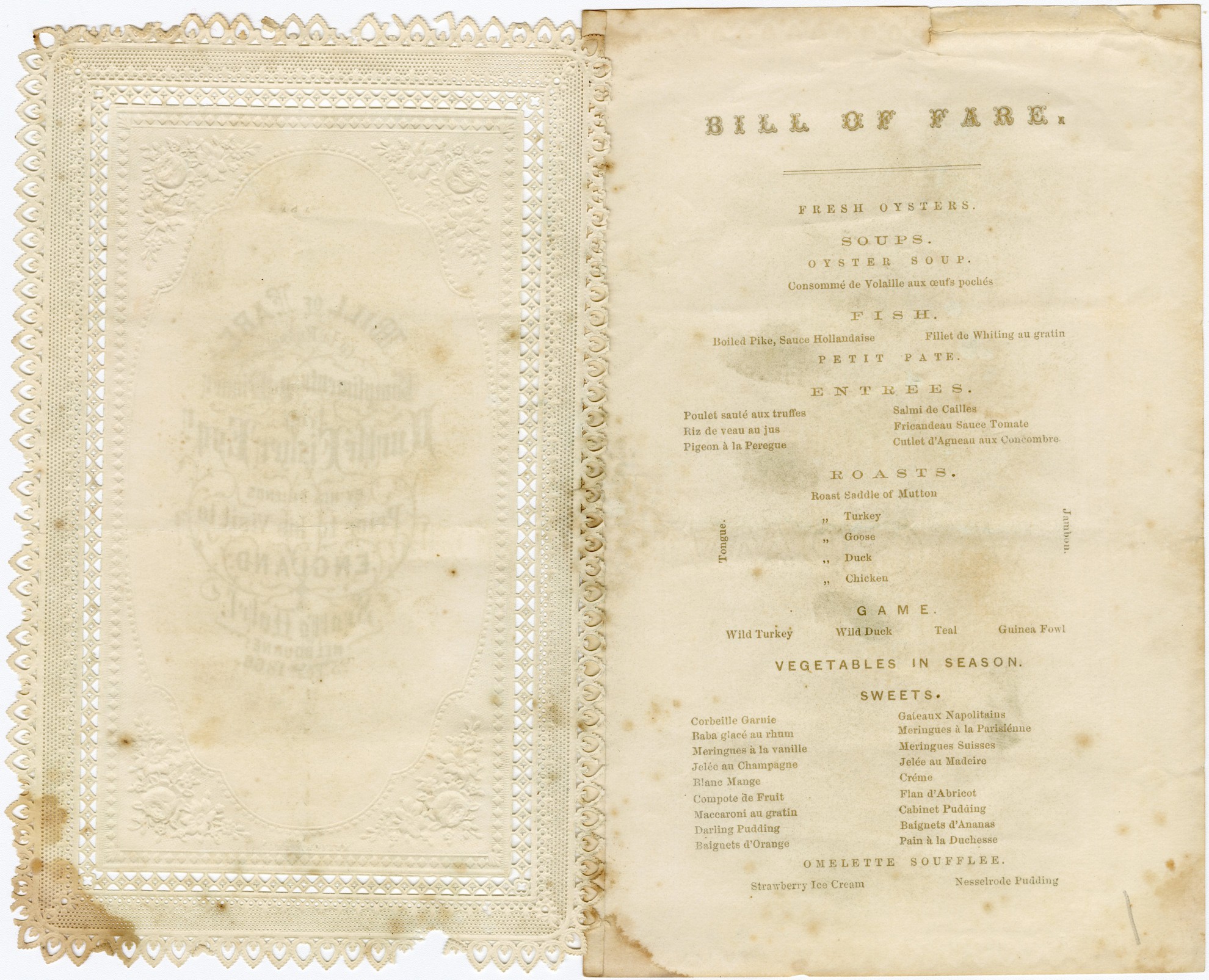 Bill of Fare for a dinner for Hurtle Fisher City Collection