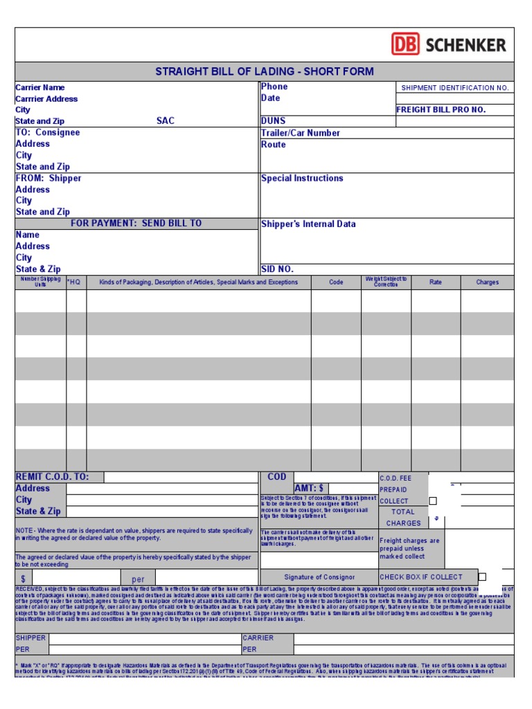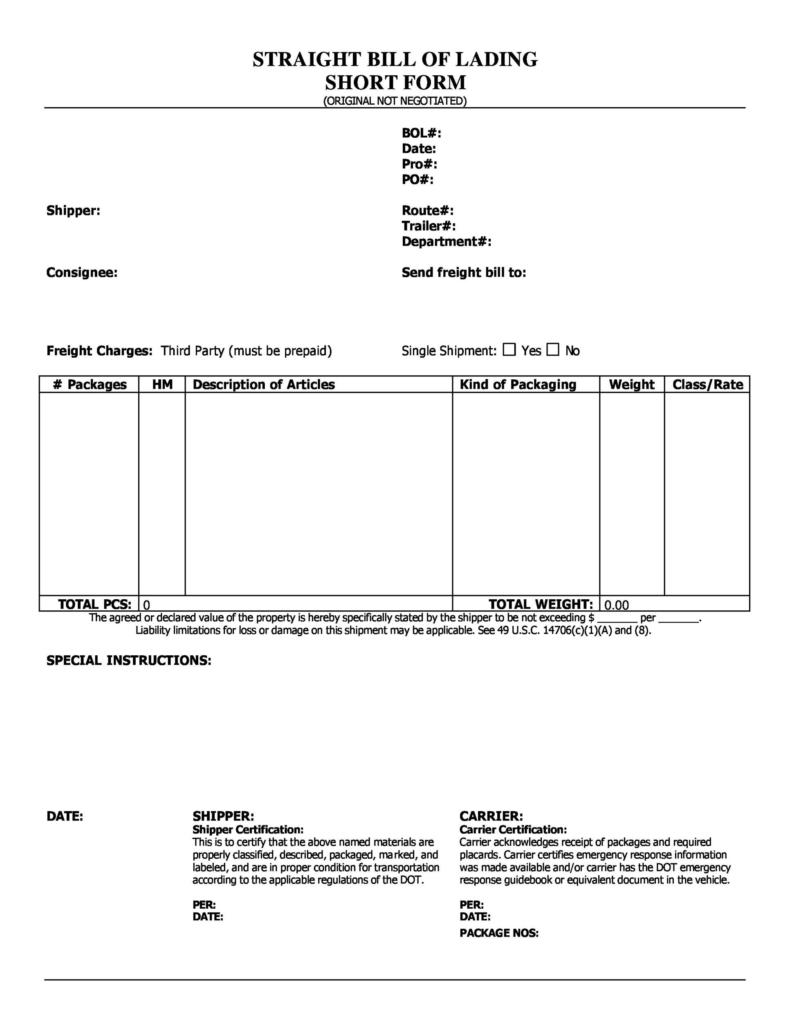 Fillable Bill Of Lading Short Form Free Form : Resume Examples #