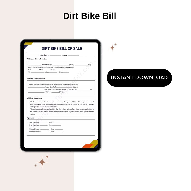 Dirt Bike Bill of Sale Blank Printable Form Template in PDF Etsy UK