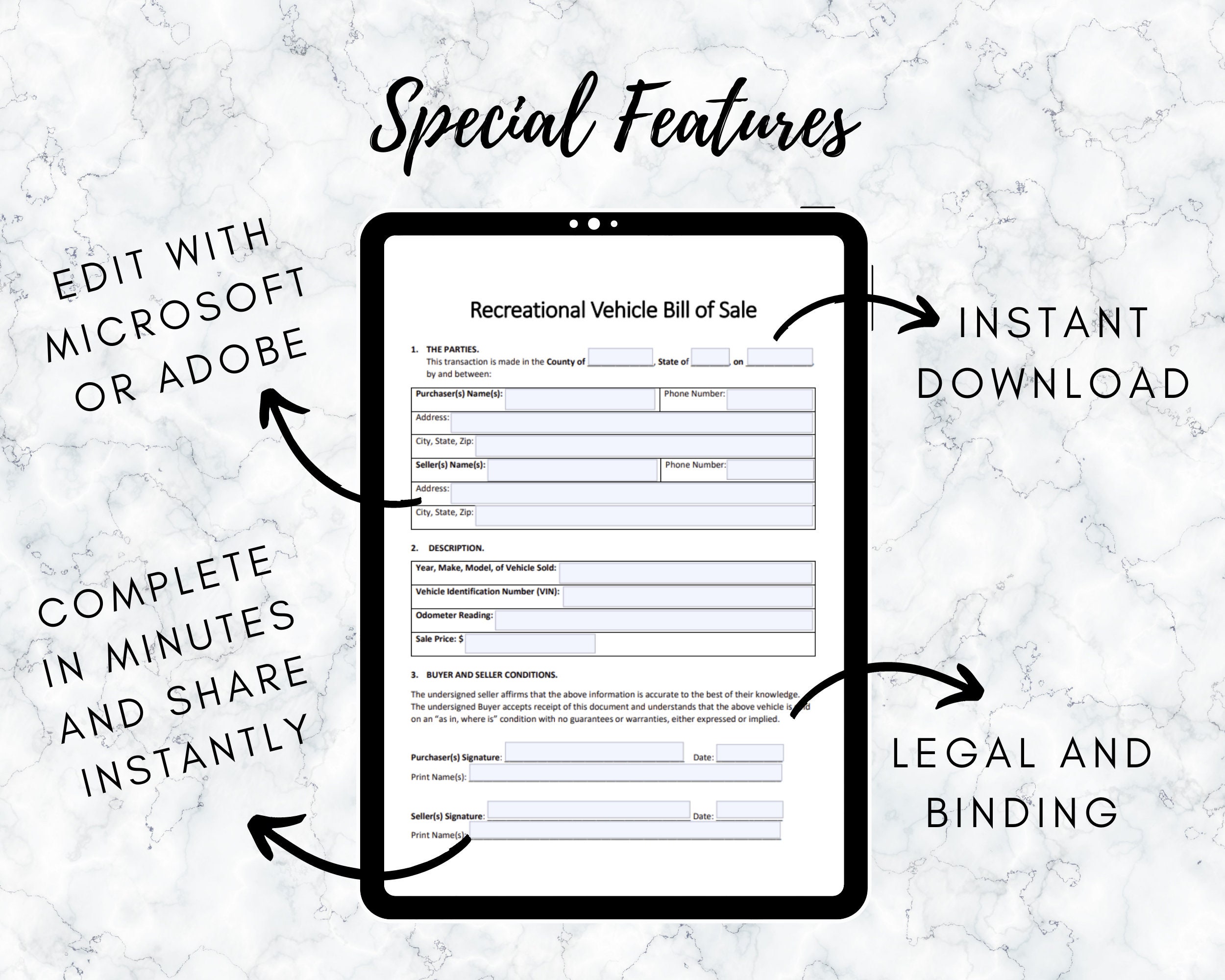 Camper RV Bill of Sale As is Template Instant Digital Download and