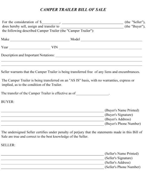 Bill Of Sale Template For Camper