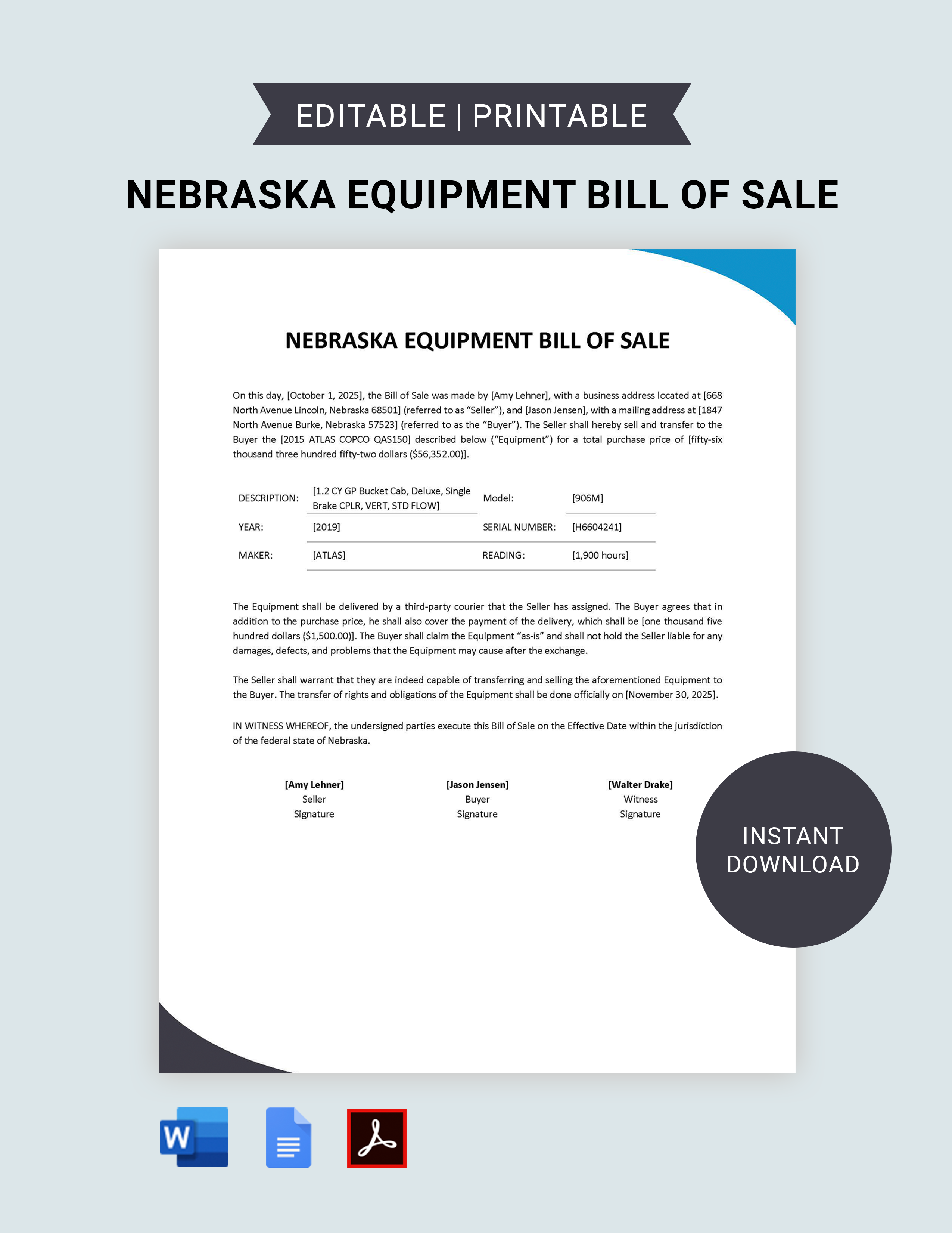 Nebraska Business Bill Of Sale Template in Word PDF Google Docs