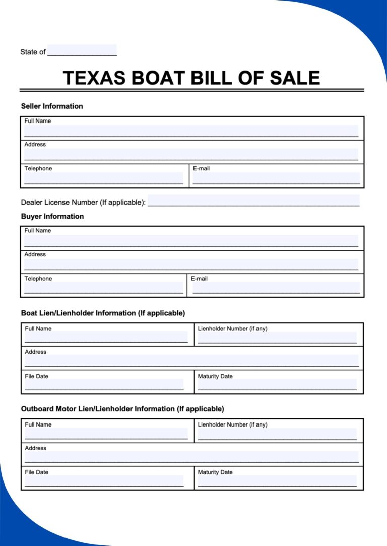Free Texas Boat Bill of Sale Printable Templates PDF Bill of Sale