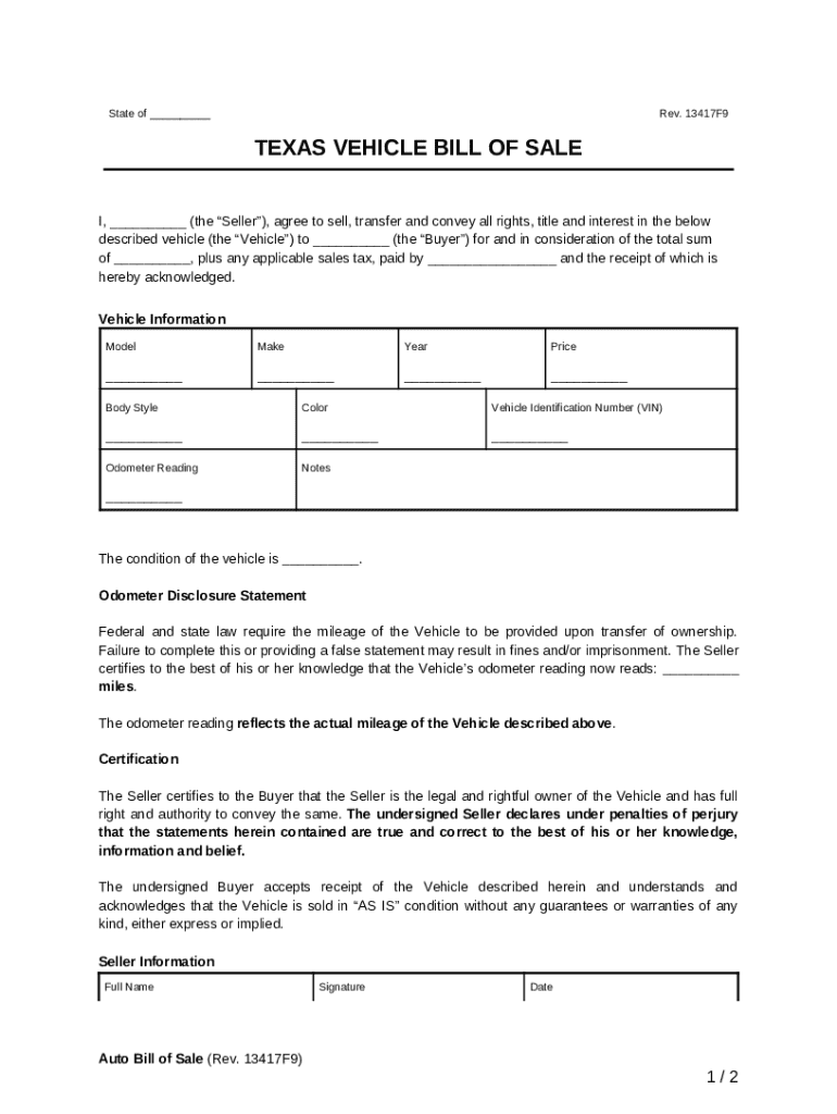 Here are some of the images for Bill Of Sale Texas Template Free that we found in our website database.