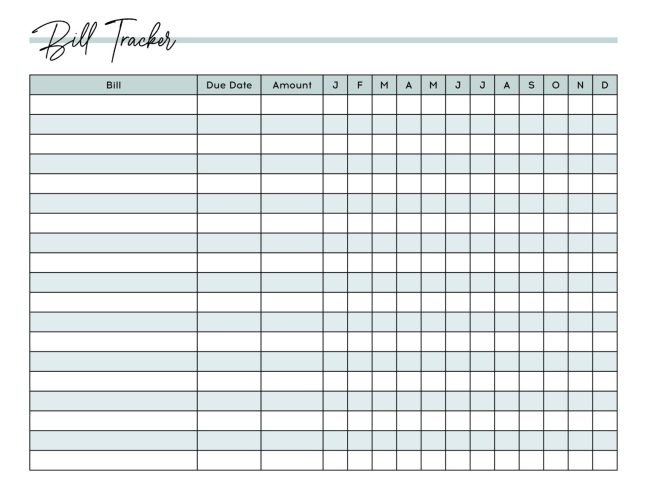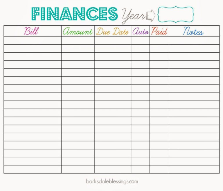 Free Printable Bill Organizer Templates For Google Sheets And Microsoft