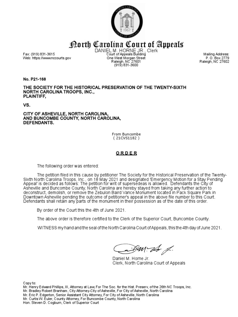 North Carolina Court of Appeals: Daniel M Horne JR Clerk PDF