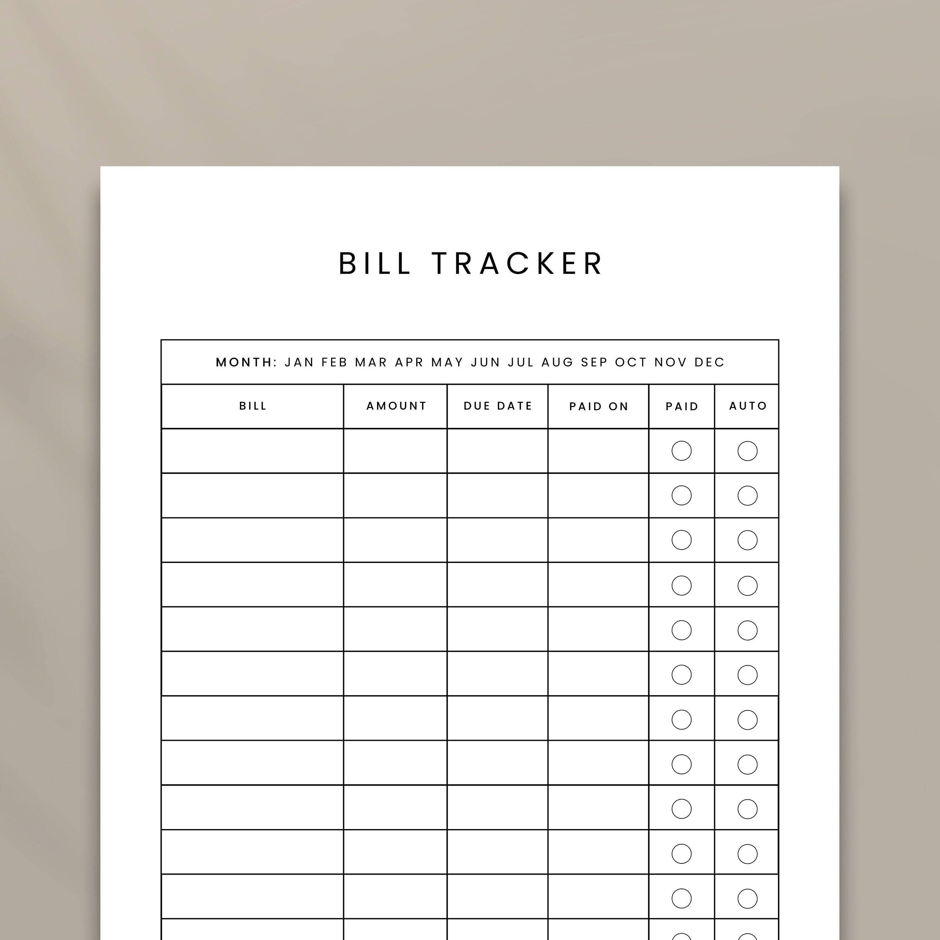 Bill Tracker Template Free Of Bill Tracker Editable Printable Instant