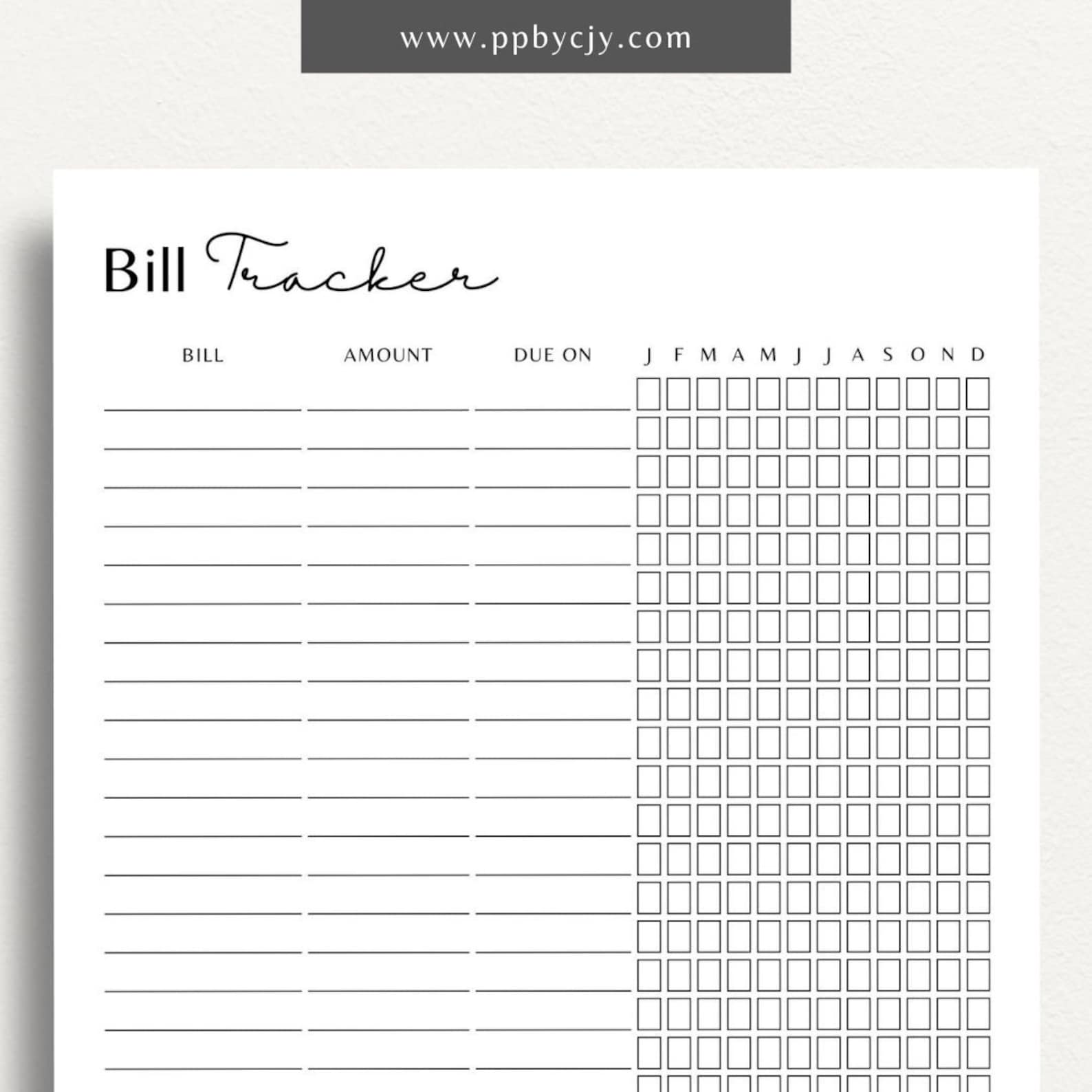 Bill Tracker Printable Template Bill Organizer Bill Planner Bill