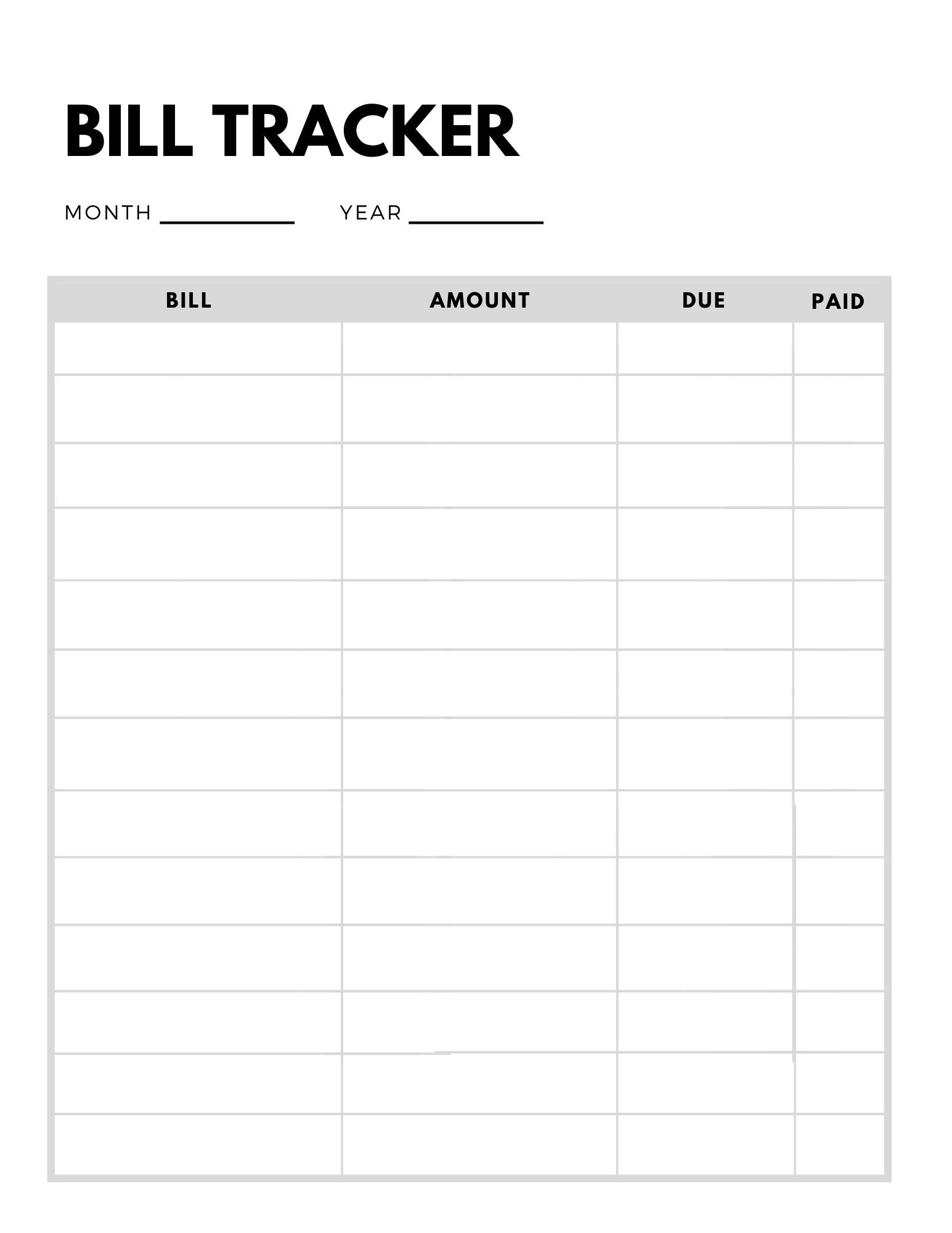 Bill Tracker Printable Templates To Keep Your Finances Organized