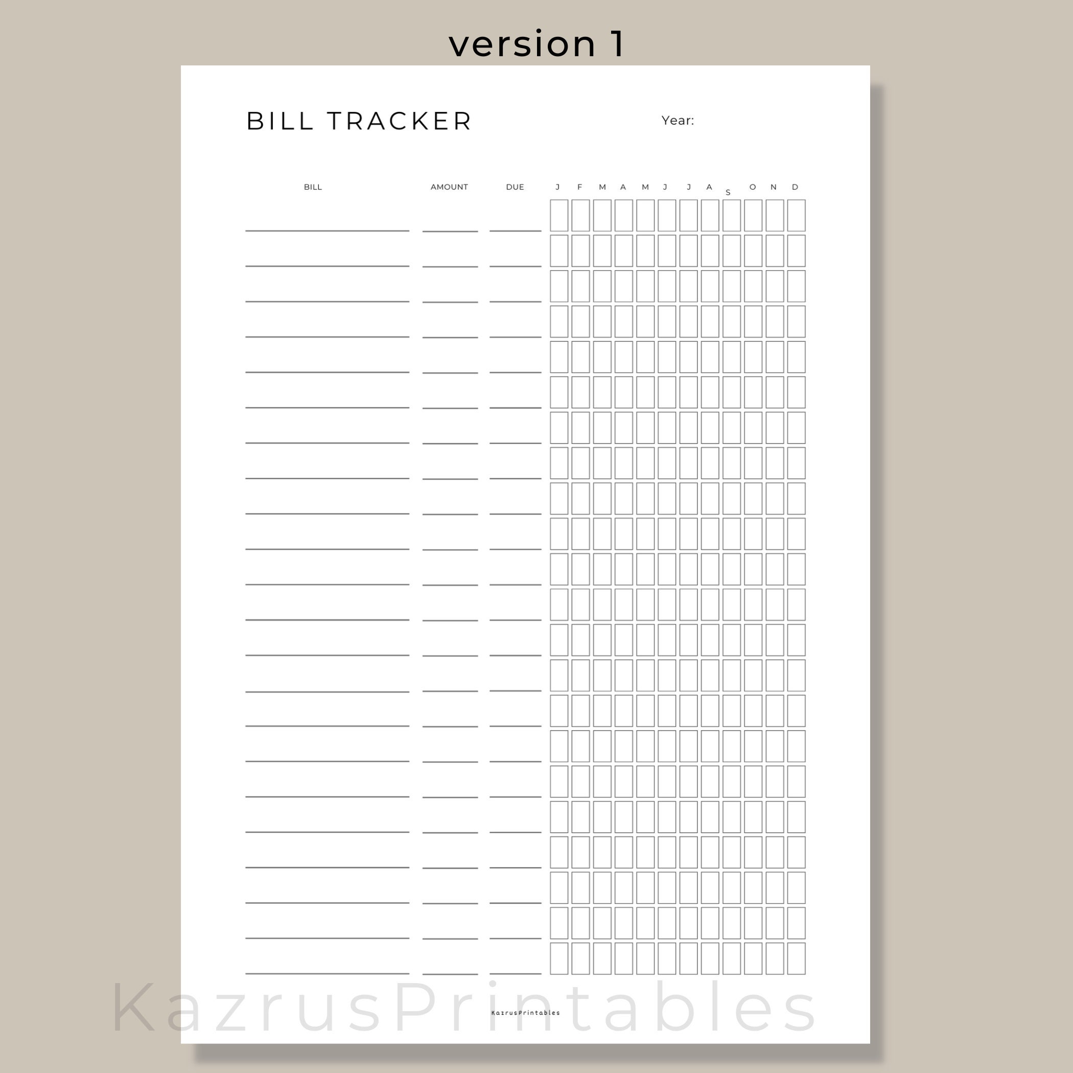 Monthly Bill Tracker Bill Tracker Printable Bill Payment Etsy
