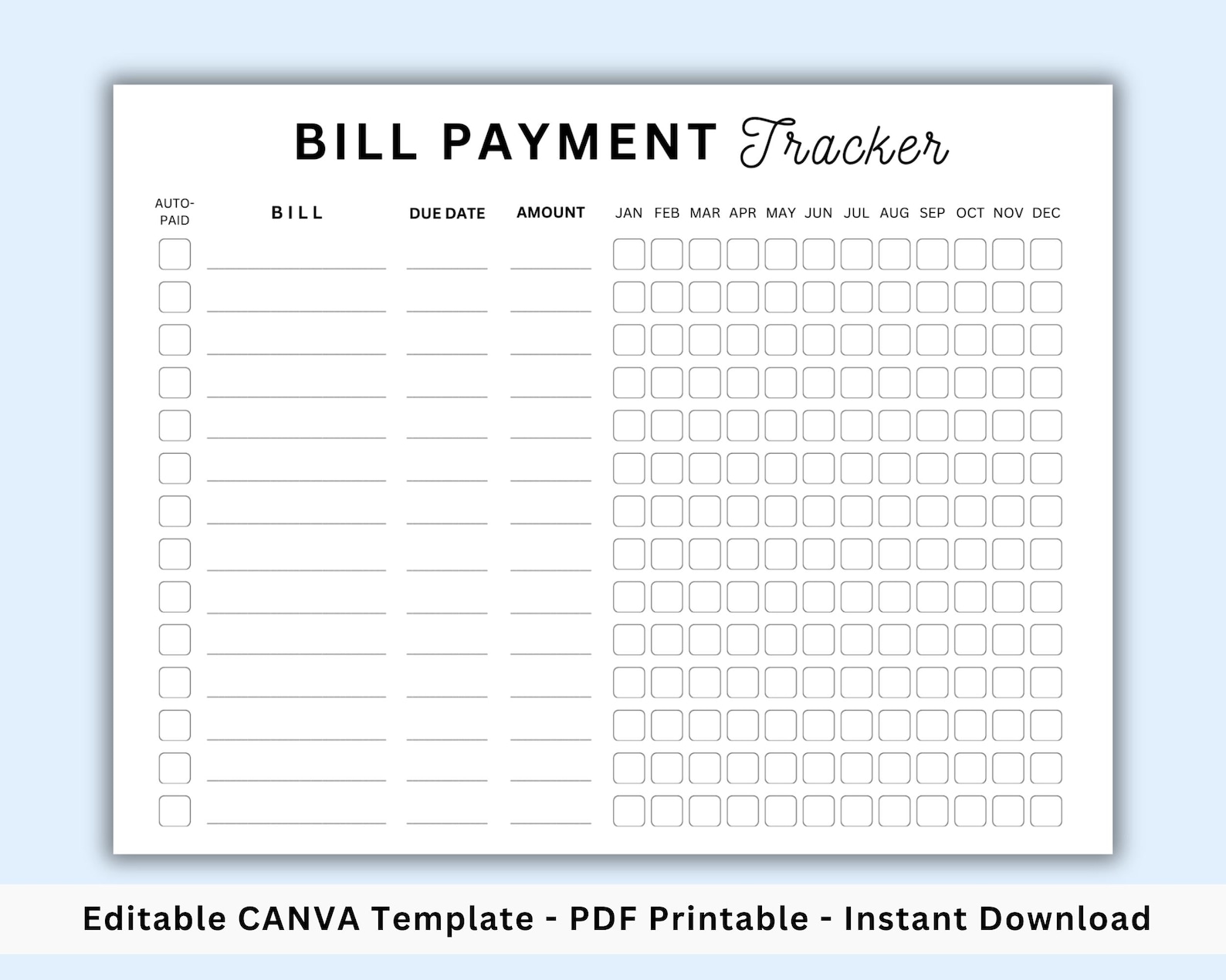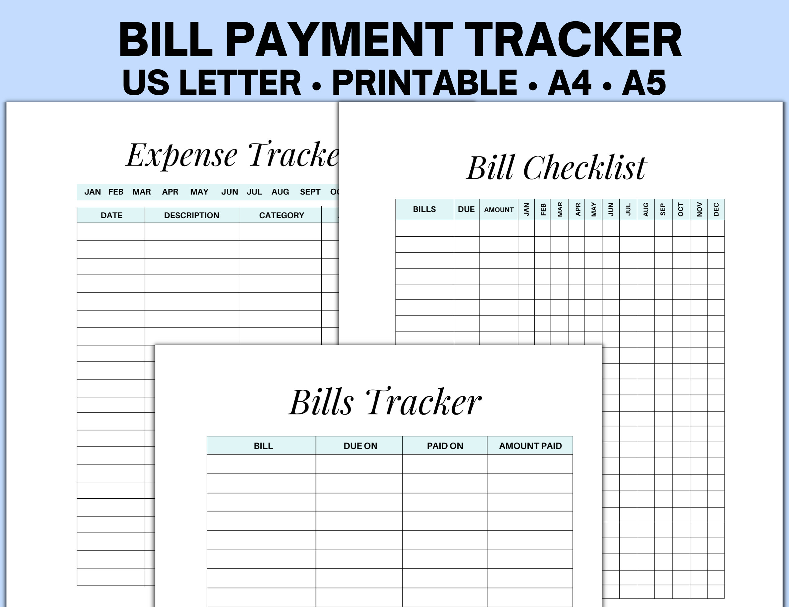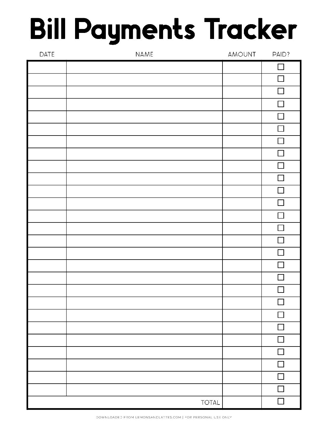 Bill Payment Tracker Printable Template Bill Payment Checklist