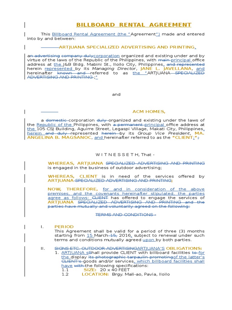 Billboard Rental Agreement: Artjuana Specialized Advertising and