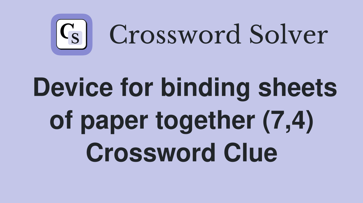 Device for binding sheets of paper together (7 4) Crossword Clue