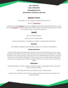 NSF SBIR Biographical Sketch Template Medtech Founder