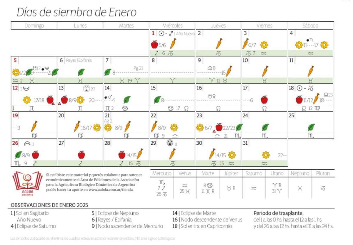 Calendario Biodinámico 2025 Completo Digital AABDA