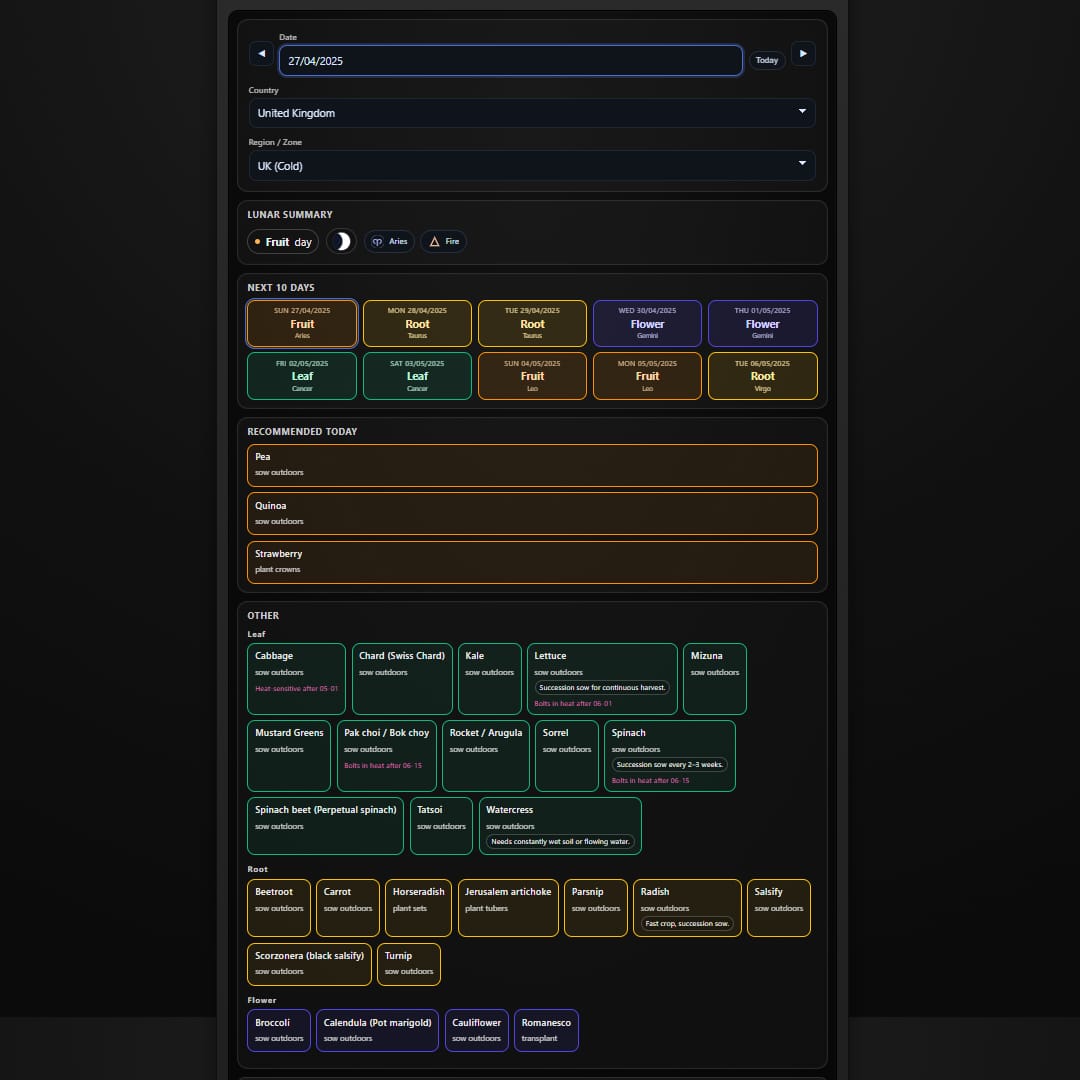 Biodynamic Planting Calendar 2026 Free App (UK US)