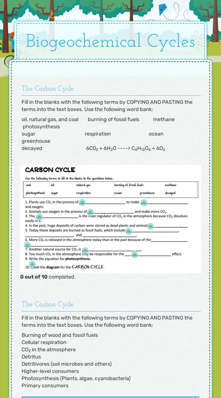 Biogeochemical Cycle Worksheets