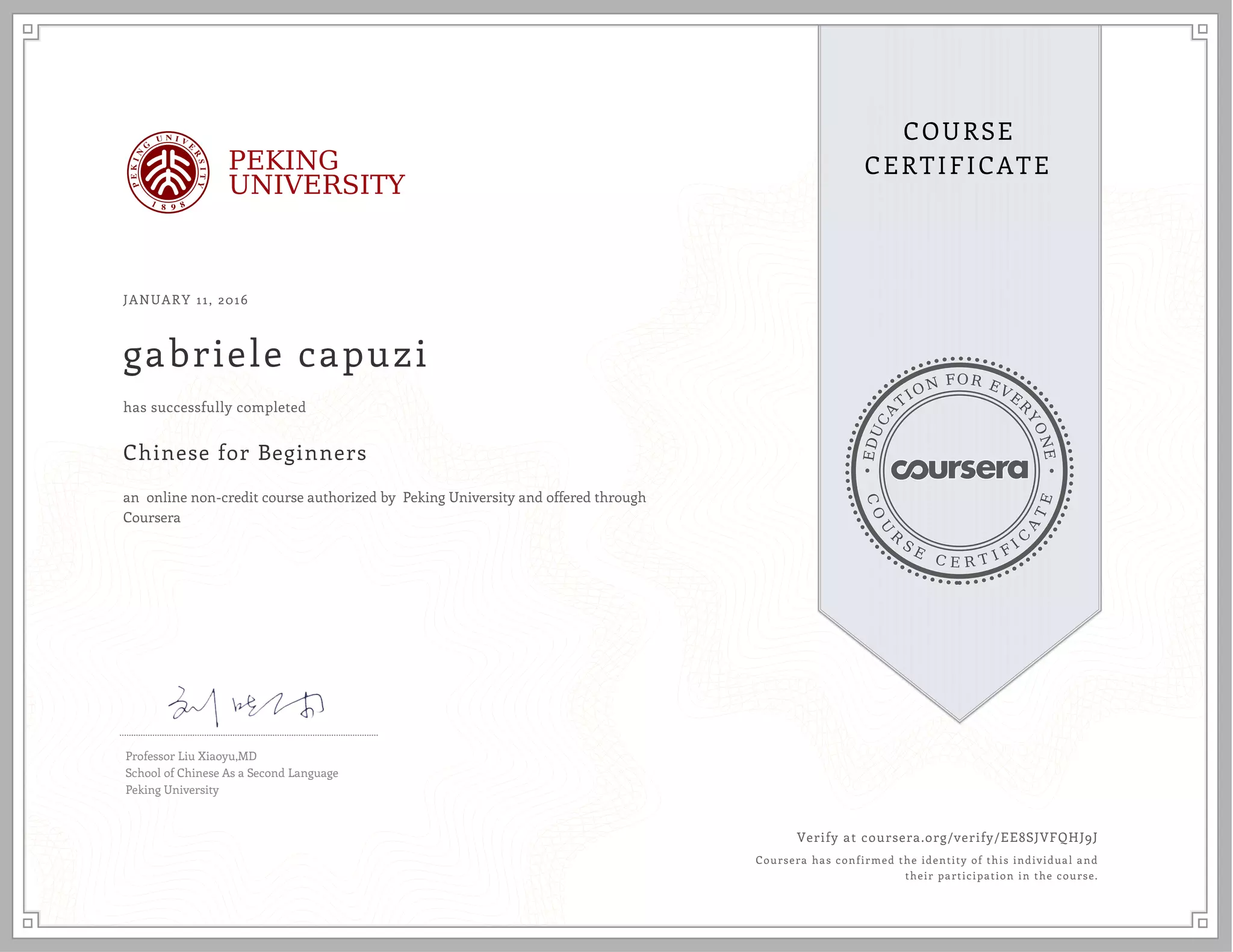 Free Online Course Certificate from Peking University PPT