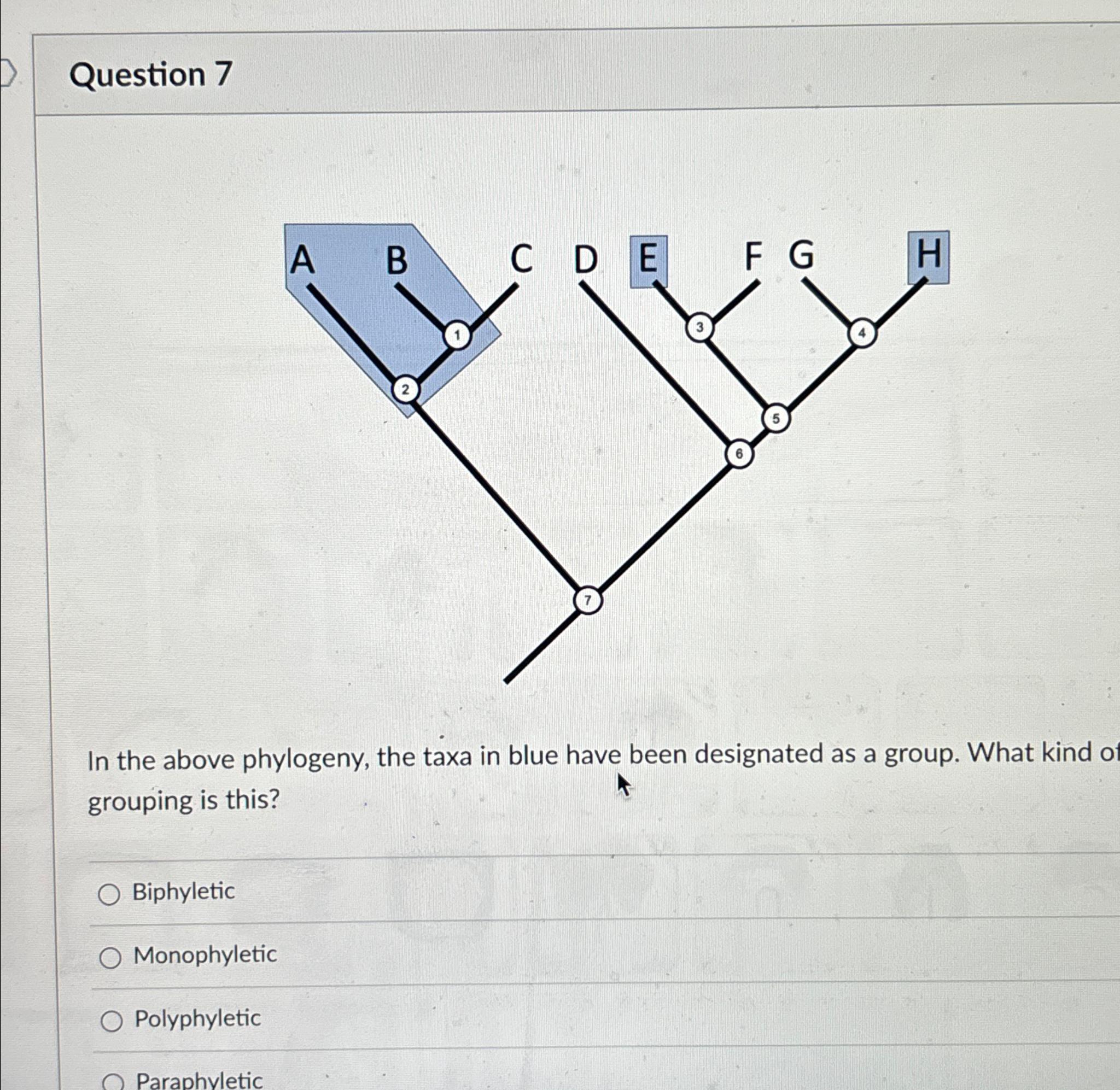 Solved Question 7In the above phylogeny the taxa in blue Chegg com