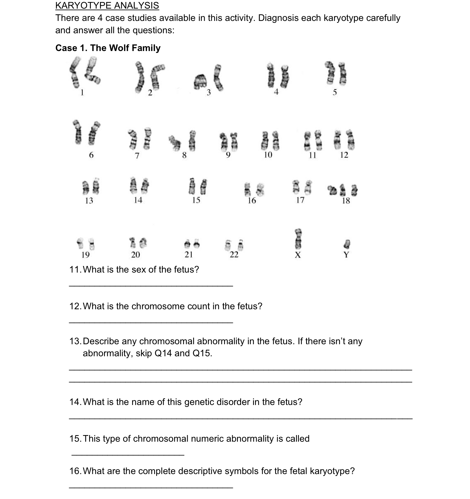 SOLUTION: Karotype evaluation practice Studypool Worksheets Library