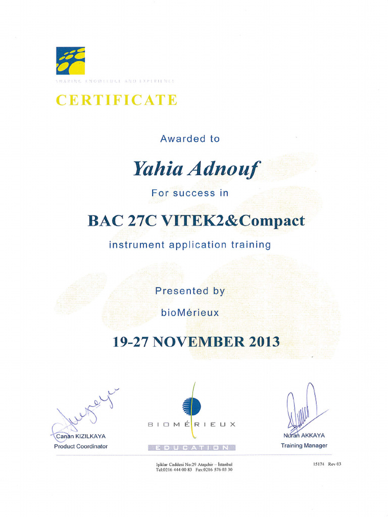 Certificate Biomérieux PDF