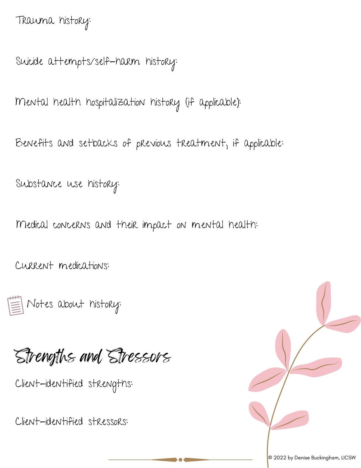 Biopsychosocial Assessment Template BUNDLE Instant Download Etsy