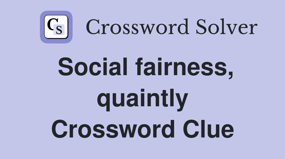 Social fairness quaintly Crossword Clue Answers Crossword Solver