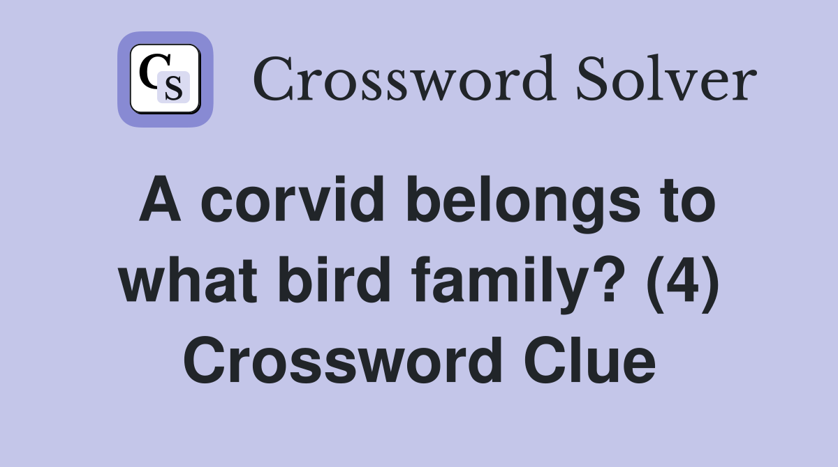 A corvid belongs to what bird family? (4) Crossword Clue Answers