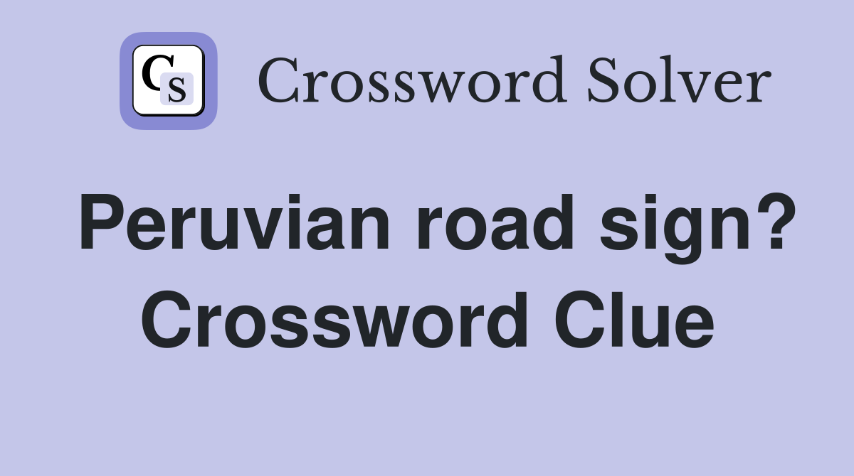 Peruvian road sign? Crossword Clue Answers Crossword Solver