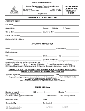 Birth Certificate Abilene Tx Fill Online Printable Fillable Blank