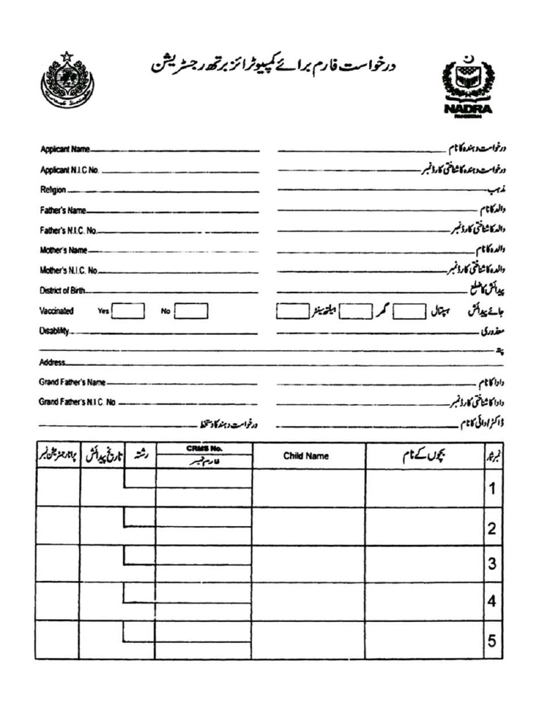 Nadra Birth Certificate Form