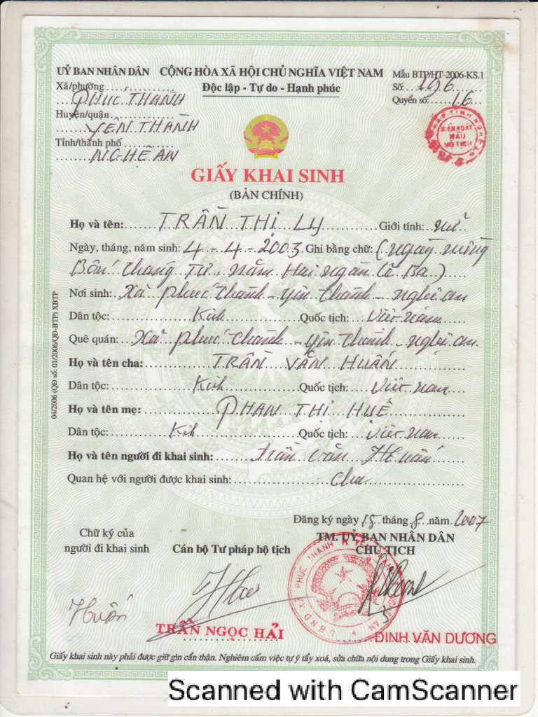 Birth Certificate In Vietnamese