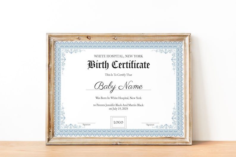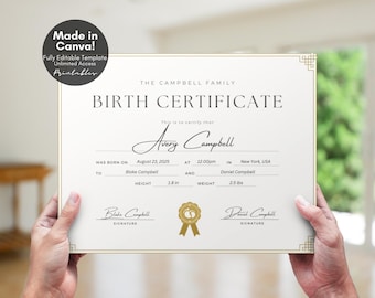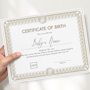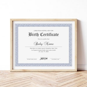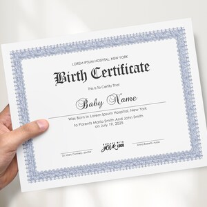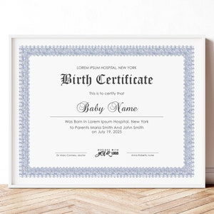 Editable Birth Certificate Template Printable Baby Boy Girl Gift