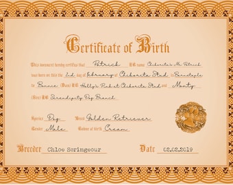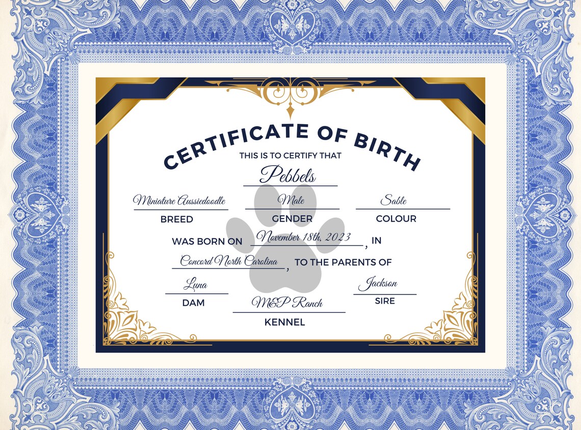 Puppy Birth Certificate Editable Canva Puppy Birth and Adoption