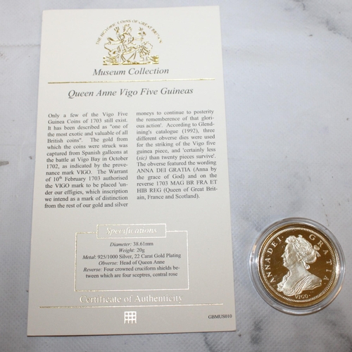 Museum Collection Queen Anne Vigo Five Guineas Coin with Certificate