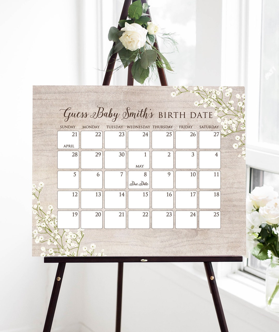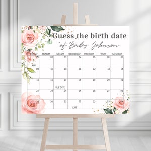 Guess Baby #39 s Birth Date Sign Birth Date Calendar for Baby Shower We