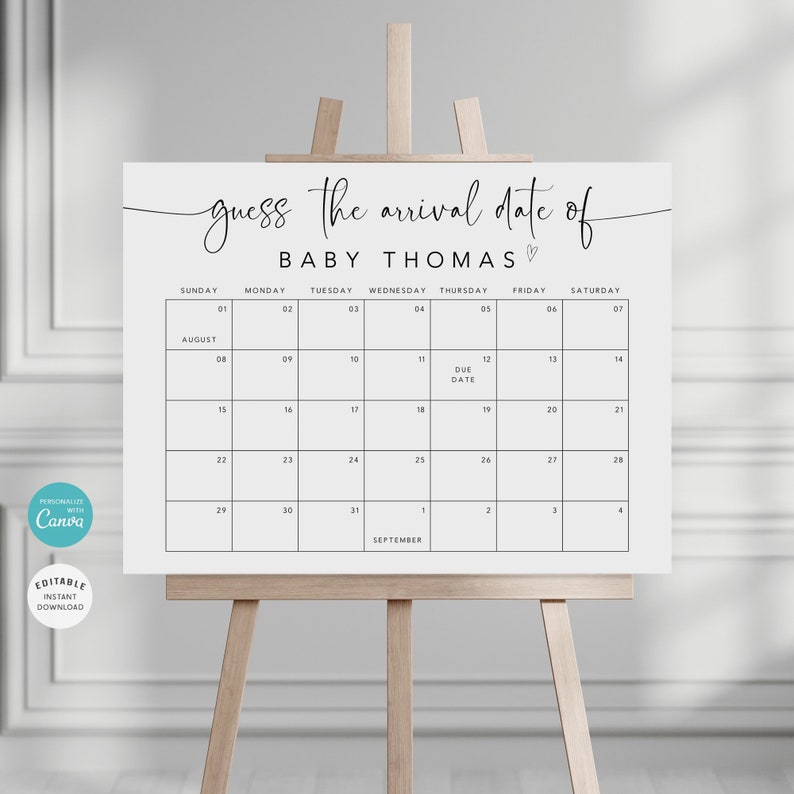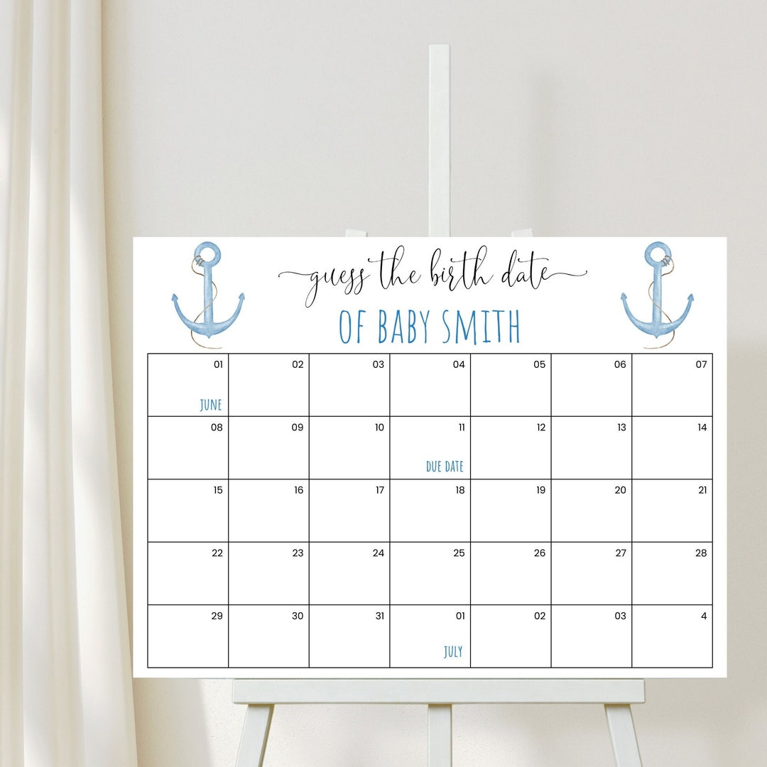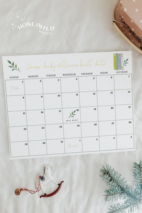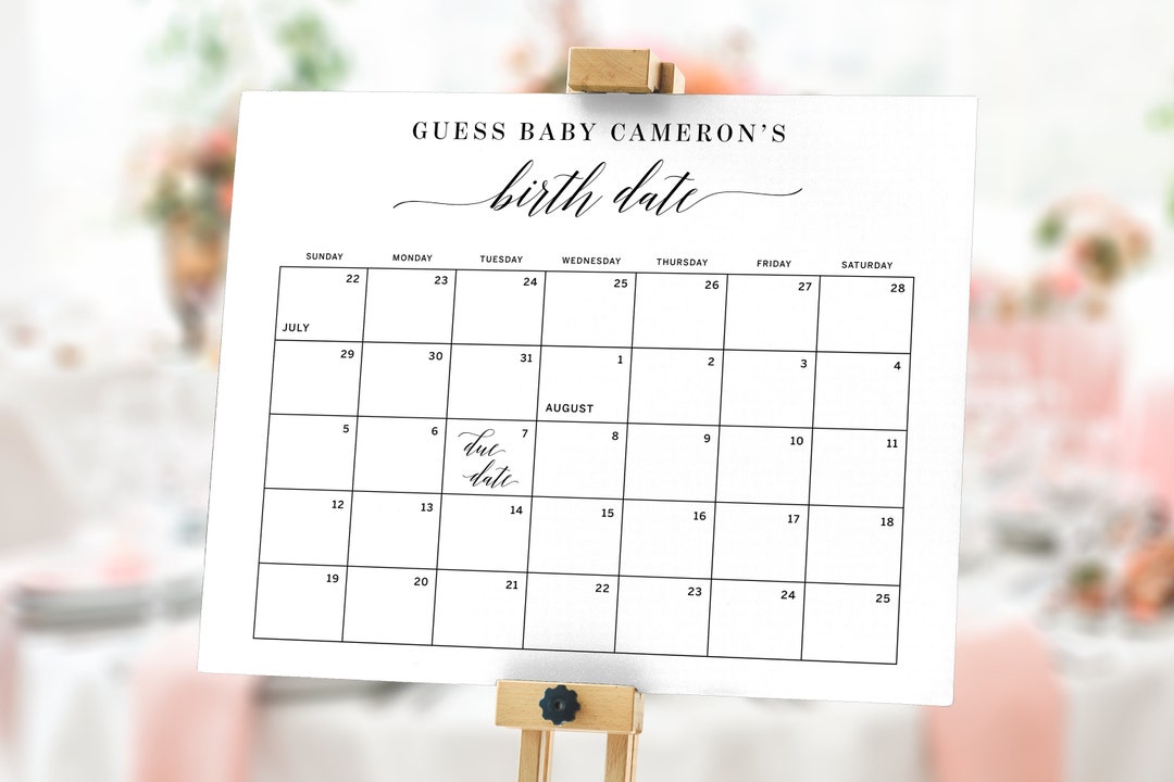 Baby Shower Activity Guess the Birth Date Calendar Etsy Canada Baby