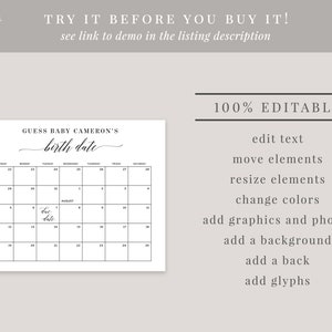 Guess the Birth Date Calendar Game Template Editable INSTANT Etsy