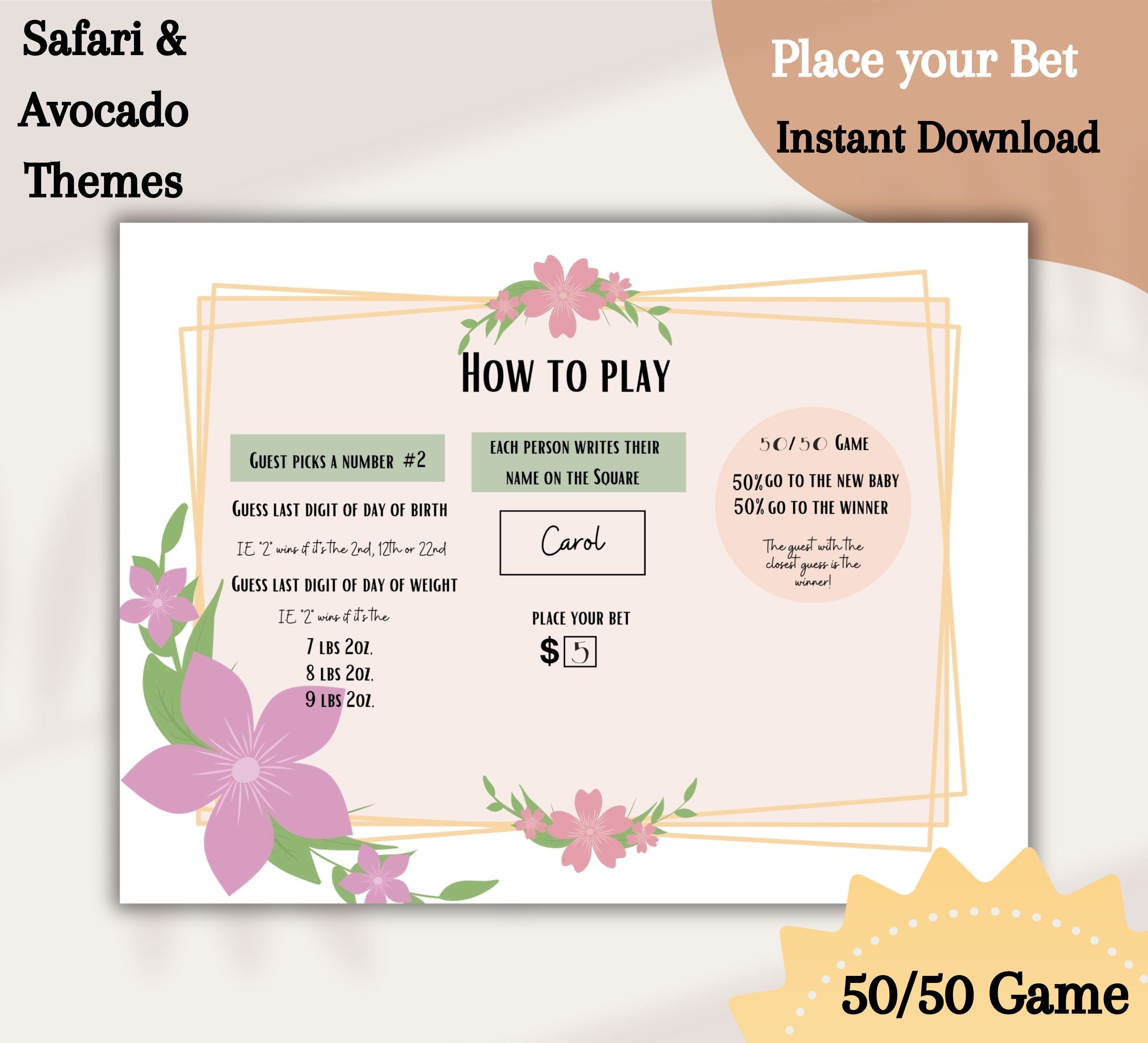 Editable Guess the Birth Date Calendar Template Floral Theme Flower