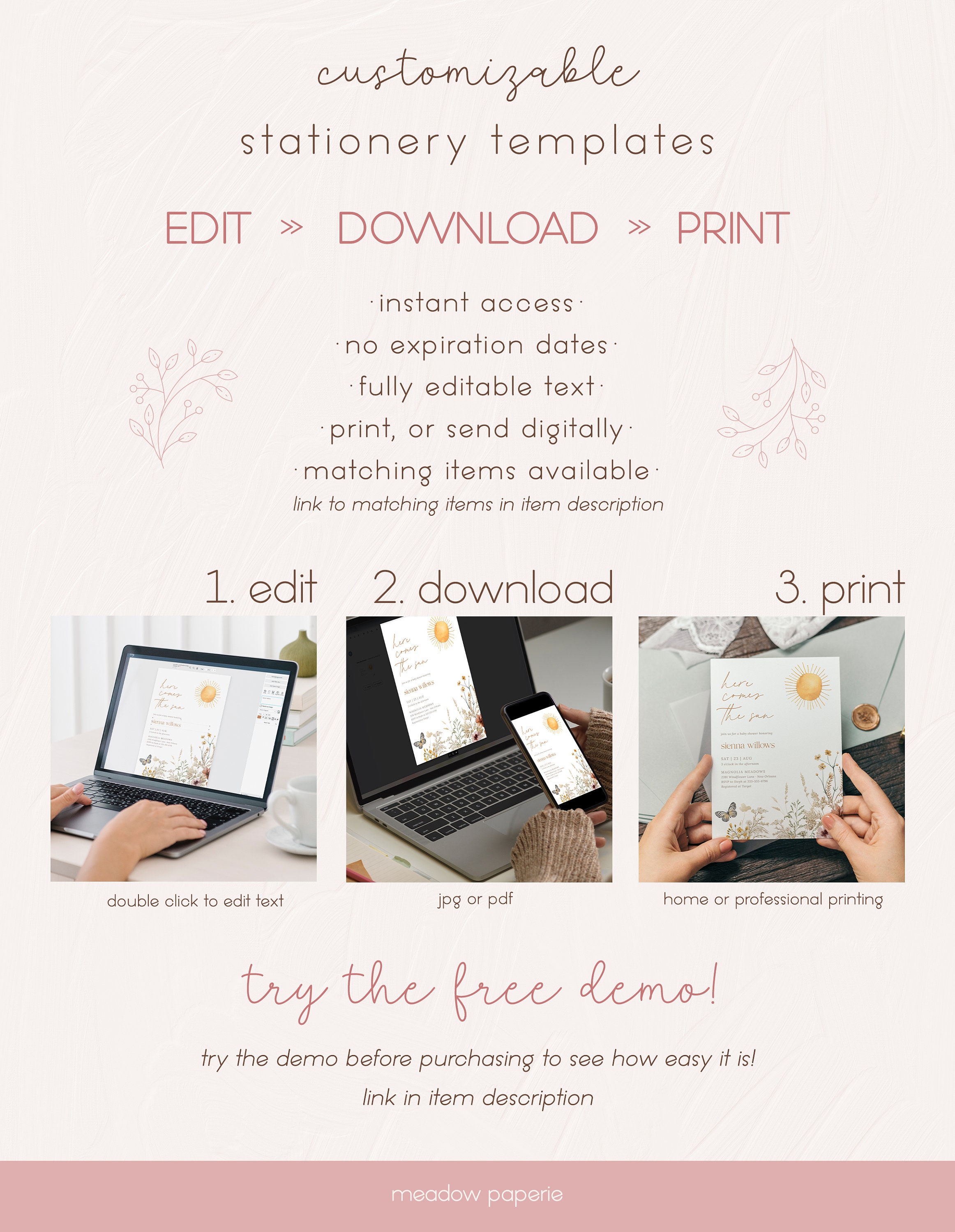 Boho Sun Baby Shower Guess Baby Due Date Earthy Baby Shower Editable