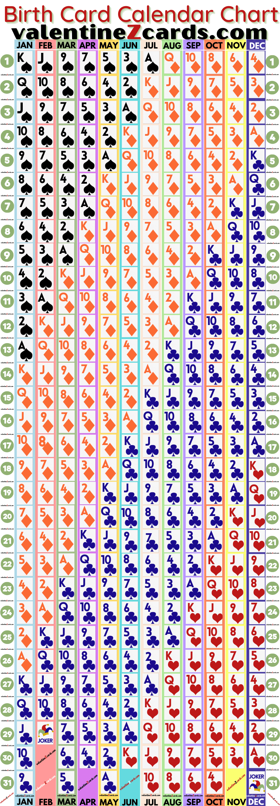 Playing Card Birth Date Calendar valentineZcards