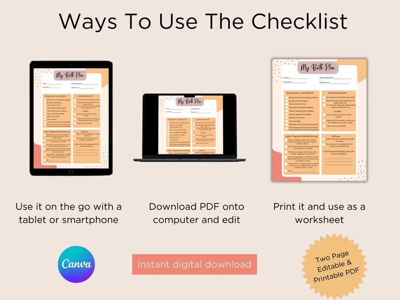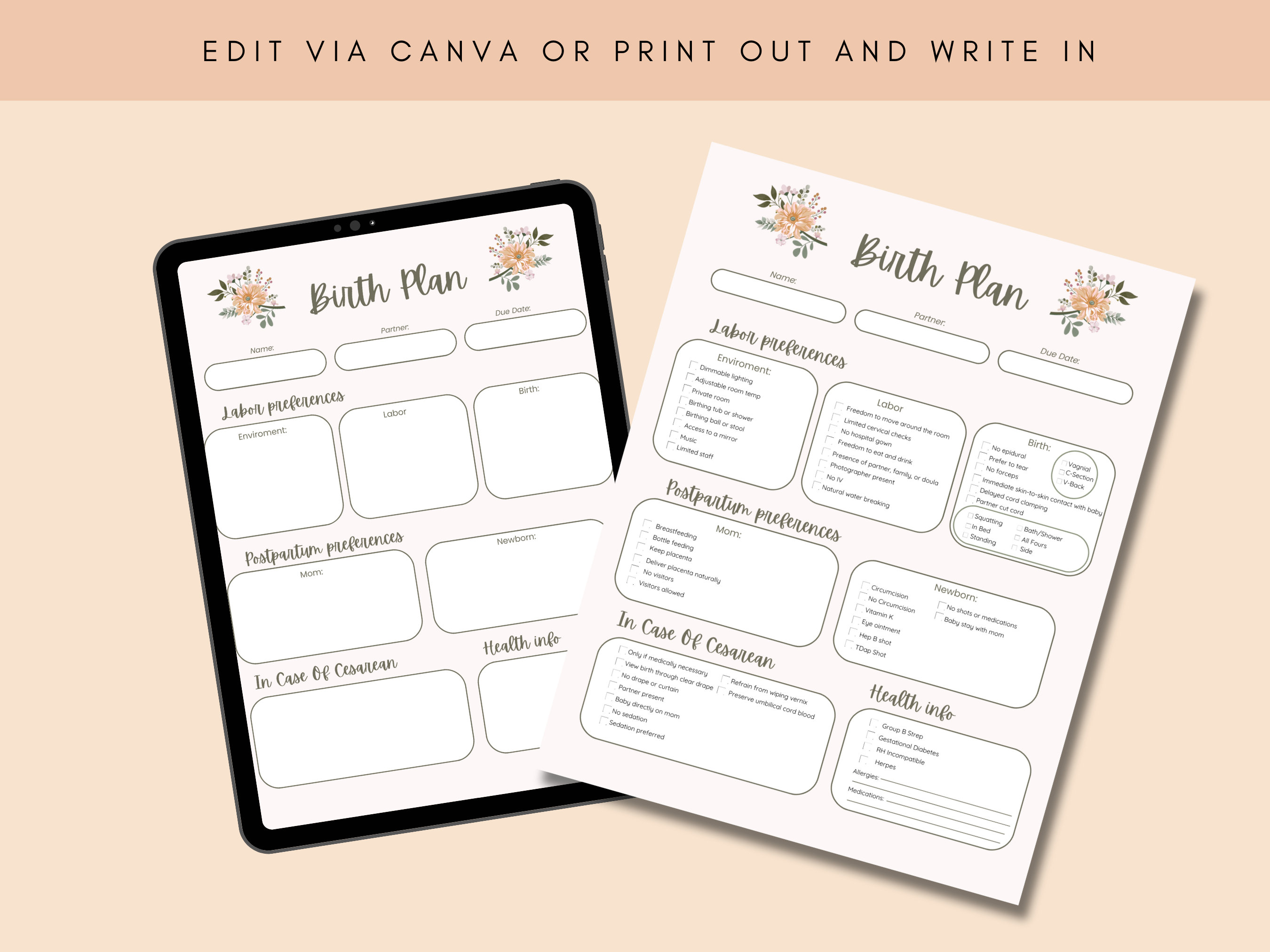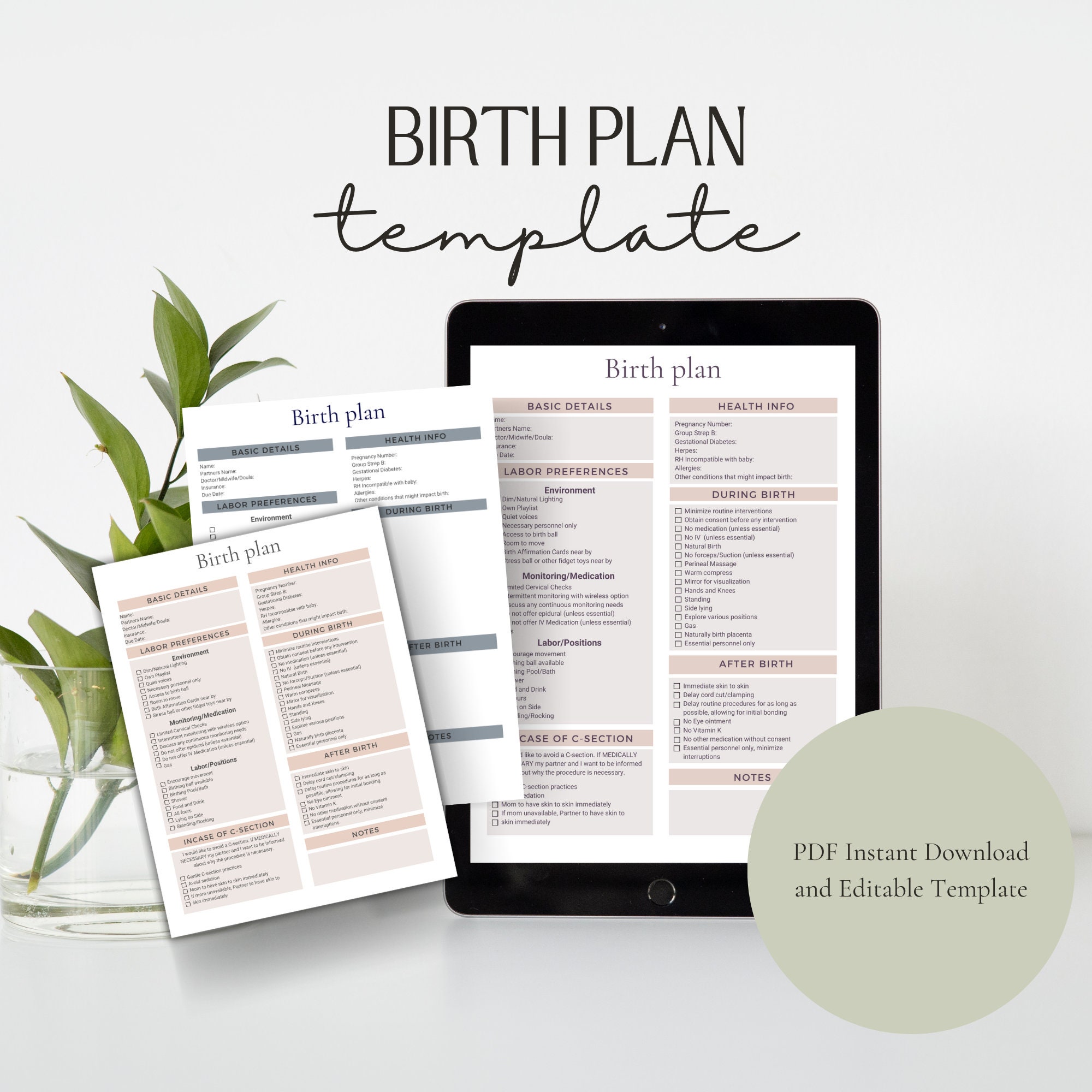 Editable Birth Plan Template Printable Birthing Plan Labor and Delivery