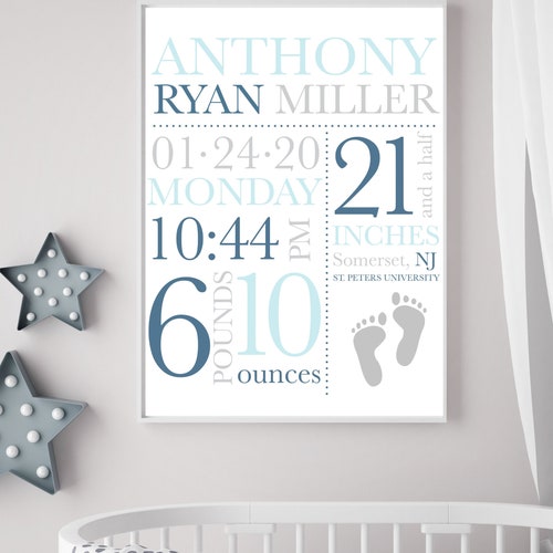 Birth Stats Printable Wall Art Baby Boy Birth Stats Blue and Etsy