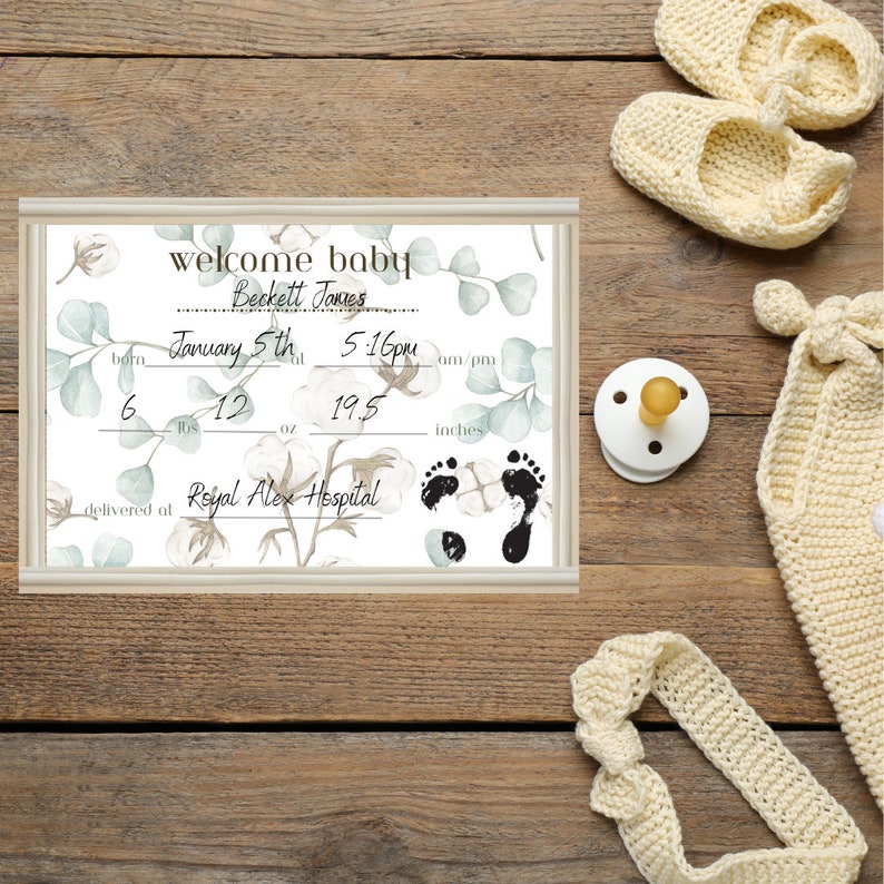 Birth stats sign template customizable printable birth stats poster