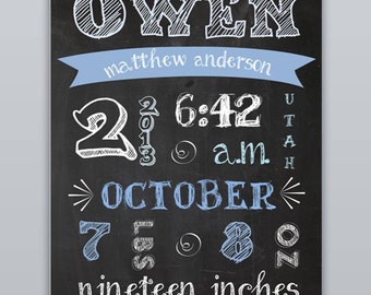 Custom Birth Announcement Printable Nursery Wall Art Personalized