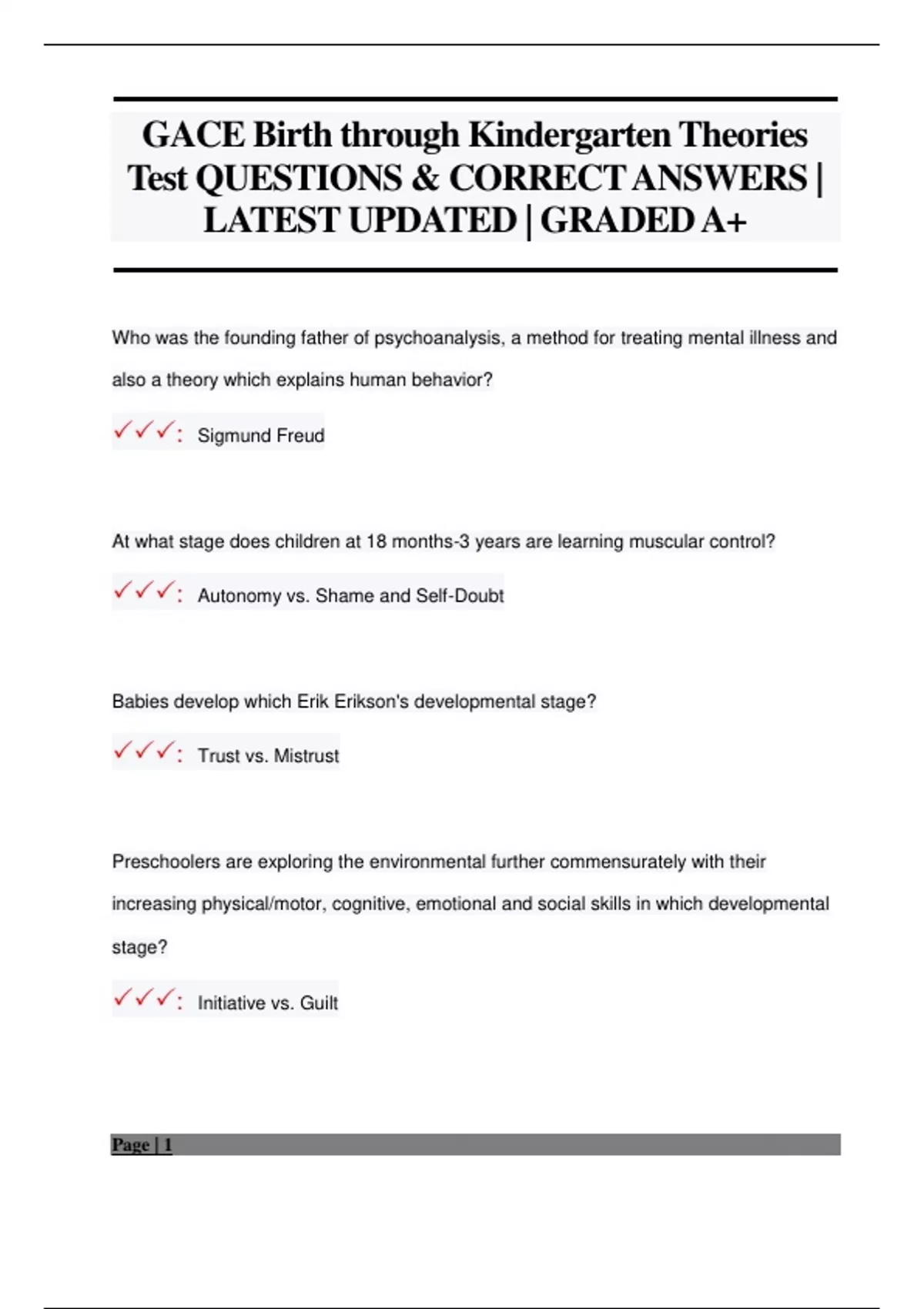 GACE Birth through Kindergarten Theories Test QUESTIONS CORRECT