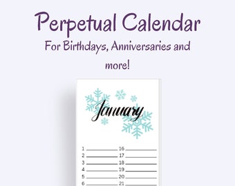 Perpetual Birthday and Anniversary Calendar Bundle Printable Party